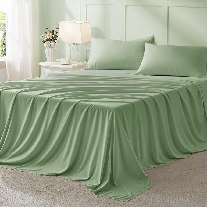 Anluoer Sage Green California King Comforter Set 7 Pieces, Bed in a Bag with Sheets, All Season Bedding Sets with 1 Comforter, 2 Pillow Shams, 2 Pillowcases, 1 Flat Sheet, 1 Fitted Sheet