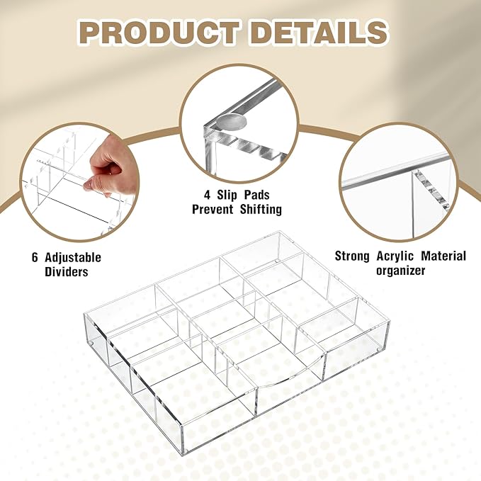 - Ease to Clean: the key feature of this acrylic drawer organizer is its easiness to clean; Just an easy wipe using a damp cloth can bring out its clean look again; Unlike wooden or bamboo organizers, it won't rot over time, ensuring durability