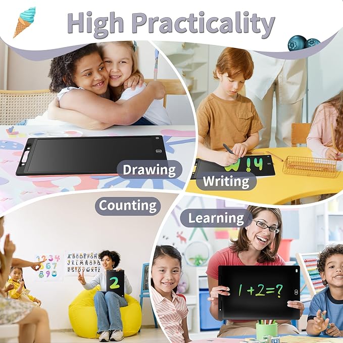 - Best Toys Gifts for Kids: The LCD writing tablet can be used as a doodle board, doodle pad, kid’s drawing pad, writing board, toddler drawing board, drawing tablet, graphic aids, graphic tablet, magic children's board, light drawing board for kids and so on. It is a perfect gift choice for kids of all age groups for back to school, birthday, Thanksgiving Day, Christmas and Children's day! It can be an educational toy for preschoolers. It can be a travel toy for long drives and road trips.