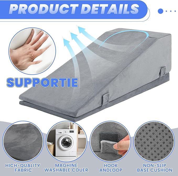 - Adjustable Height for Optimal Elevation This leg elevation pillow set offers two height options (7.9" and 9.8"), allowing you to comfortably raise your legs above heart level. Ideal for post-surgery recovery, it helps reduce swelling and promotes healthy blood circulation.