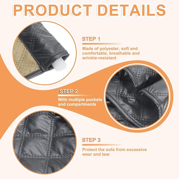 - Material: The sofa armrest organizer is made of polyester, with fine workmanship, is durable, soft and comfortable, has good breathability, is wrinkle-resistant, easy to wash, and can be used for a long time