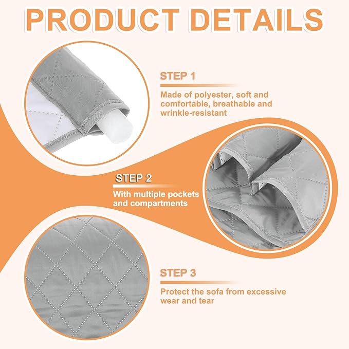 - Material: The sofa armrest organizer is made of polyester, with fine workmanship, is durable, soft and comfortable, has good breathability, is wrinkle-resistant, easy to wash, and can be used for a long time