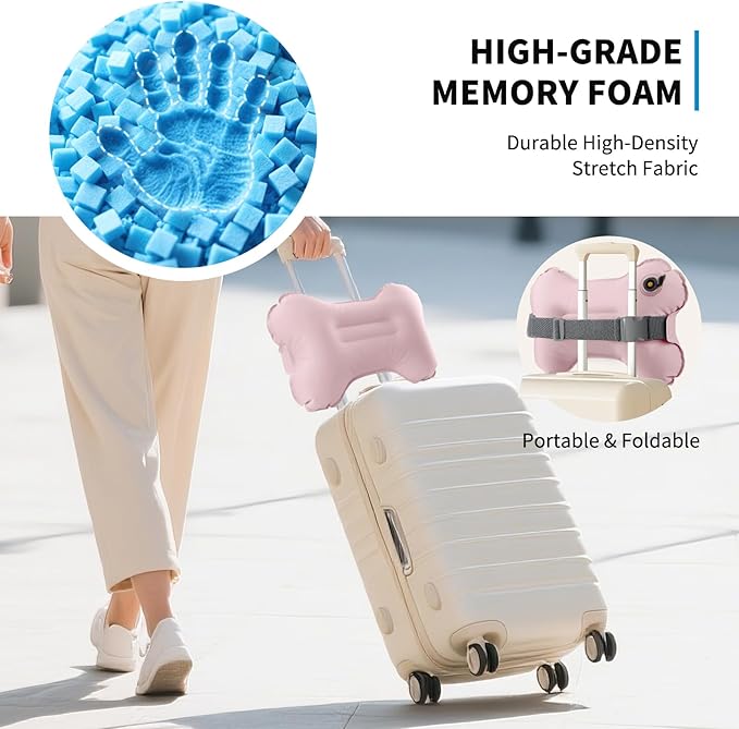Mixtrend Travel Lumbar Pillow – Inflatable Memory Foam Back Support Cushion for Airplane, Car, Office Chair, Long Flight – Ergonomic Pain Relief for Women, Men & Kids(Blush Pink)