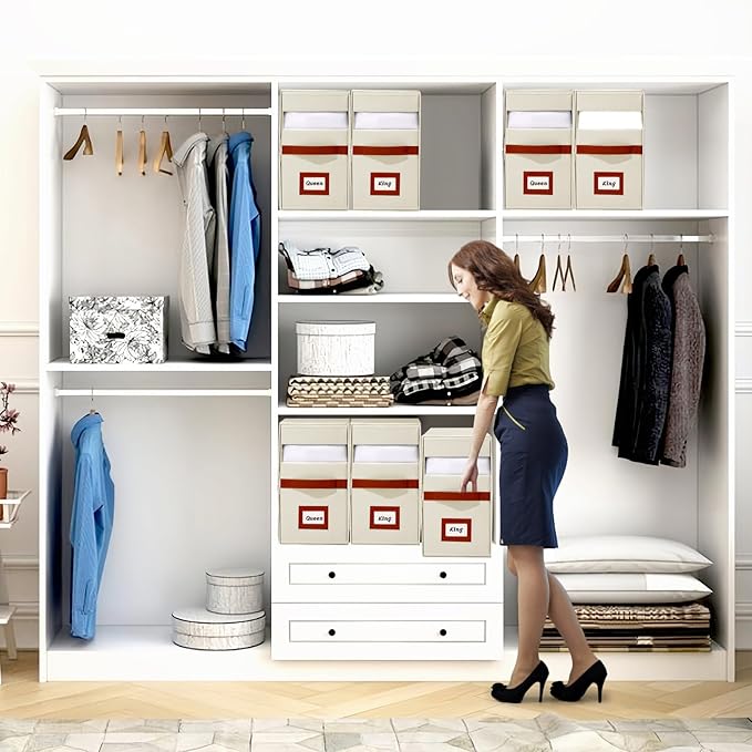 - 4. Foldable Space-Saving Bed Sheet Orgznizers: The foldable design allows for efficient storage, saving space in your linen closet and bedroom. When not in use, it folds down to just 1 inch thick, making it easy to carry and store
