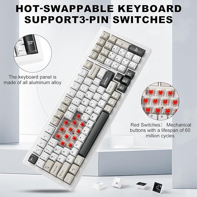 - 【Gasket-Mounted 99-Key Compact Layout & Noise Reduction】 Space-Saving 96% Layout with Premium Stability – 99-key design retains numpad and arrows while saving 20% desk space. Gasket structure + 5-layer silicone padding eliminates hollow sounds and enhances keystroke consistency for tactile comfort.