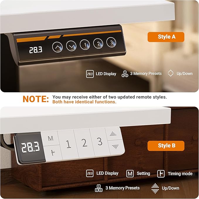 - 3-Button Memory Presets: The electric standing desk features an LED display hand controller for easy height adjustments and to monitor the current height. It also comes with three memory preset buttons, allowing users to quickly switch between their preferred heights with just one touch, enhancing convenience and work efficiency.