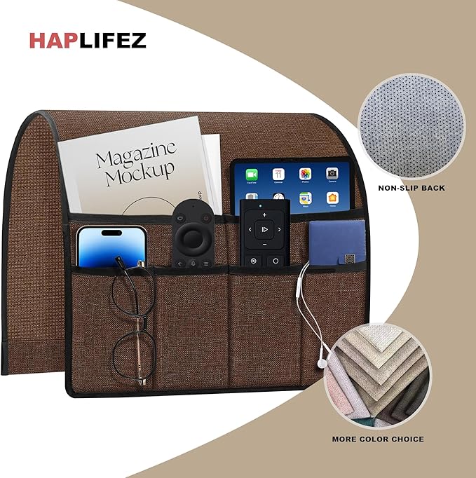 - Multi-Pocket Organization: Equipped with 6 spacious pockets to store remotes, tablets (up to 9 inches), phones, magazines, and small essentials, reducing clutter while maintaining easy access.