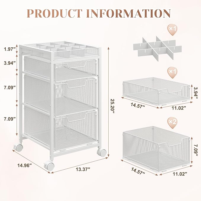 - 【CLASSIFIED STORAGE】Our rolling cart comes with 3 drawers that are frequently used to store paints, art supplies, craft supplies, toys, cosmetics and more. With this craft cart, you don't have to worry about having nowhere to put your items, it can help you to categorize them effectively.