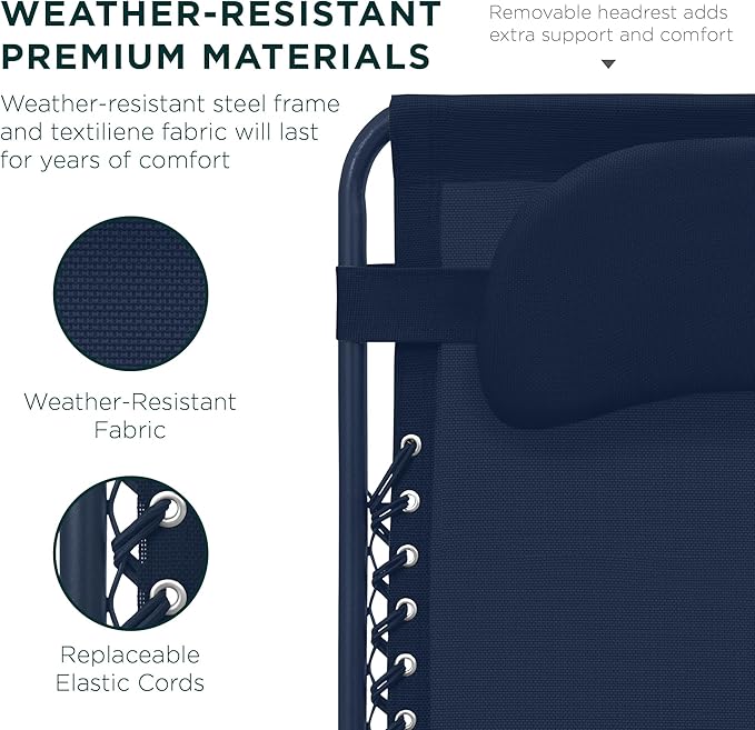 Best Choice Products Oversized Zero Gravity Chair, Folding Outdoor Patio Lounge Recliner w/Cup Holder Accessory Tray, Pillow - Indigo