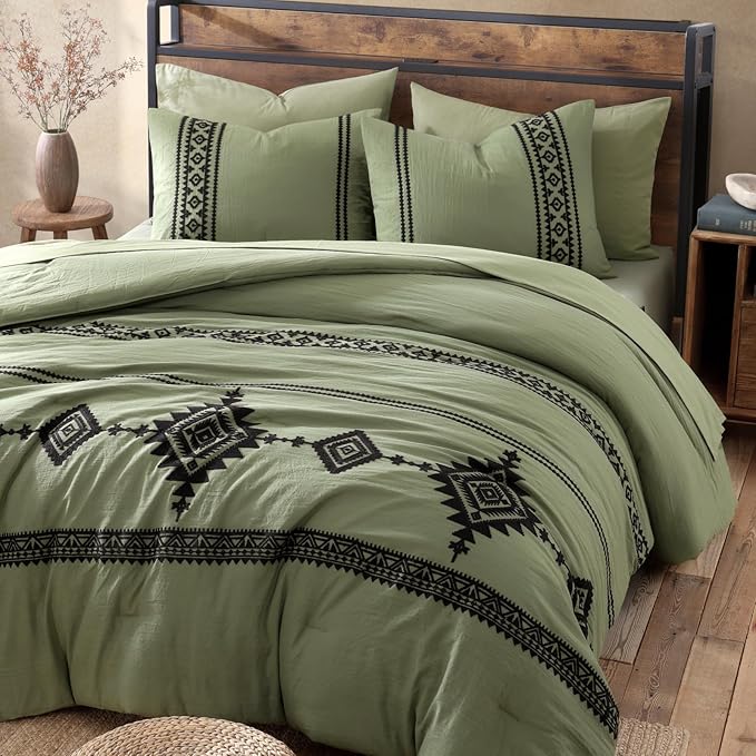 - Exquisite Embroidery Design: The farmhouse full size comforter uses chain-stitching embroidery techniques to display 3D Boho western pattern with needle and thread, pairing with matching sheets, creates a classic farmhouse style in your bedroom.Due to the pre-washing process,the fabric naturally wrinkles,enhancing its tactile feel even further.