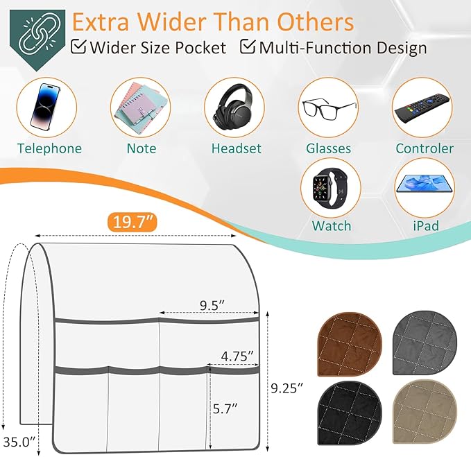 - 【WIDELY APPLICABLE】 Multi-color design, conform easily to almost any style sofa, chair, recliner, mattress and table. Beyond its organazier function, well against spills, pets fur, stains, and normal wear and tear or any possible mess and accidents.