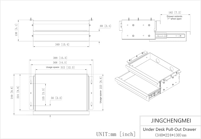 - Product Size: Width15.3" x Depth 9.8" x Height 5.1"; Each Layer Usage Space: Wide 12.3" x Deep 8.8" x High 2.28", The Drawer can Extend 7.2" When Sliding Out (Not including the handle).