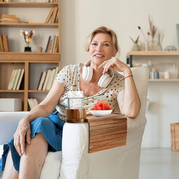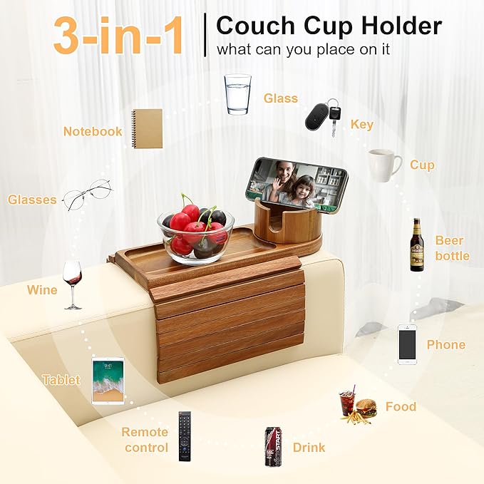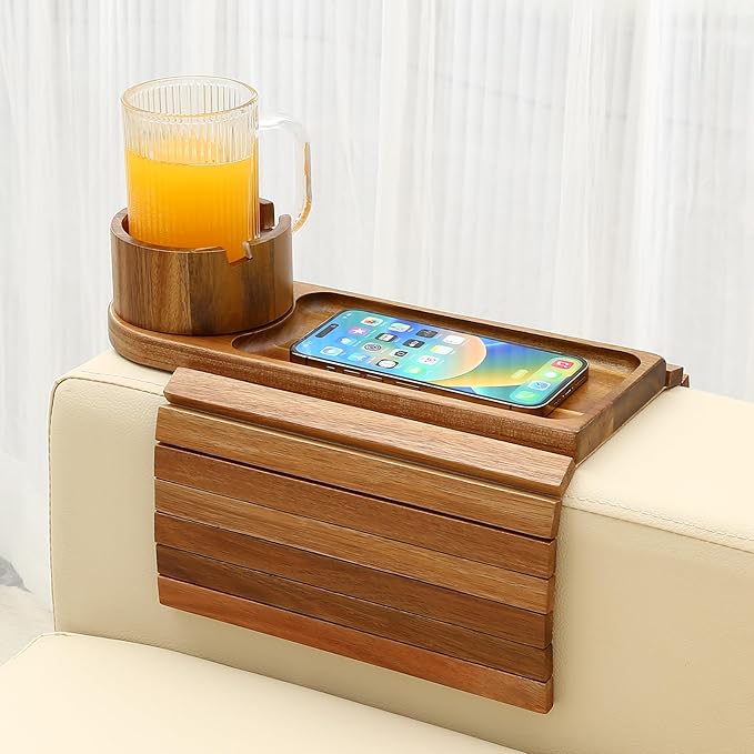 - 🎁The Perfect Couch Arm Cup Holder:🎁Our couch cup holder tray, also referred to as a couch table tray, makes a thoughtful gift, suitable for dorms, living rooms, and offices.It's an excellent choice for various occasions, including birthdays, holidays, or simply as a gesture of appreciation