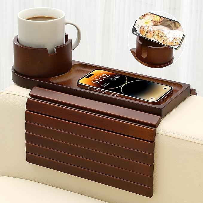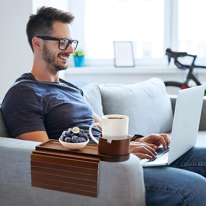 - 🎁The Perfect Couch Arm Cup Holder:🎁Our couch cup holder tray, also referred to as a couch table tray, makes a thoughtful gift, suitable for dorms, living rooms, and offices.It's an excellent choice for various occasions, including birthdays, holidays, or simply as a gesture of appreciation