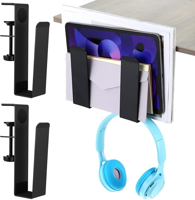 - Universal Hanging Desk Organizer: Tool-free clamp fits desks 0.08"-1.97" thick (wood/glass/metal). Includes rubber pads for scratch-free installation - perfect side desk storage for home offices and studios.
