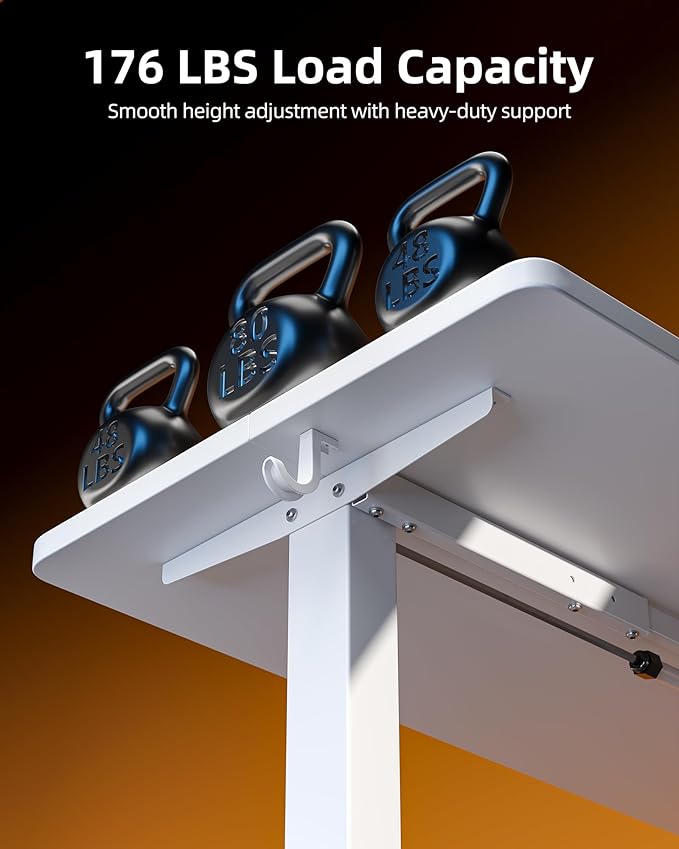 - 「Outstanding Stability」 - The electric standing desk boasts powerful lift system to ensure a smooth, steady, quieter operation. The powerful motor is cable of lifting up to 176 lbs, with smooth speed at 25mm/s, and noise less than 45dB.