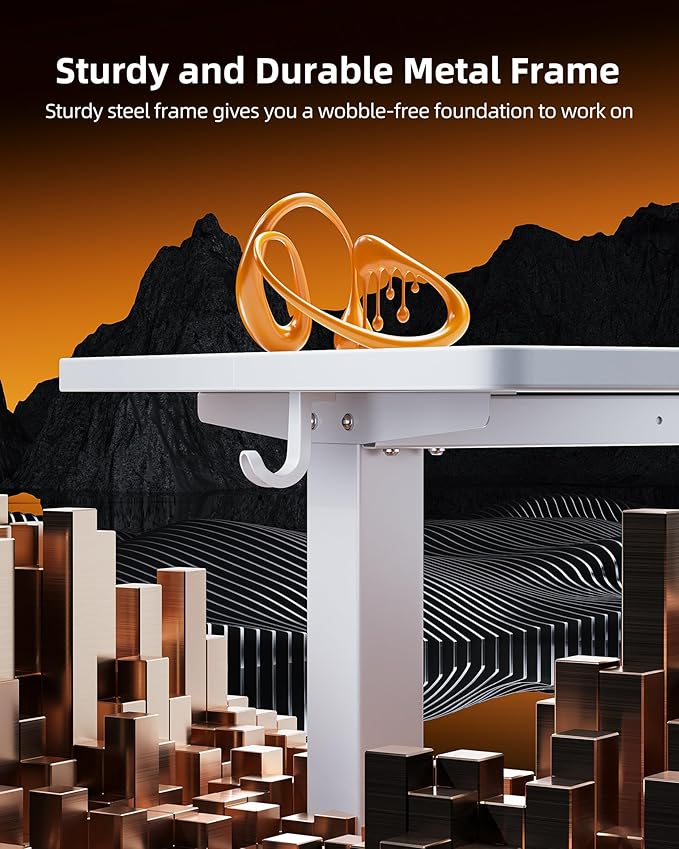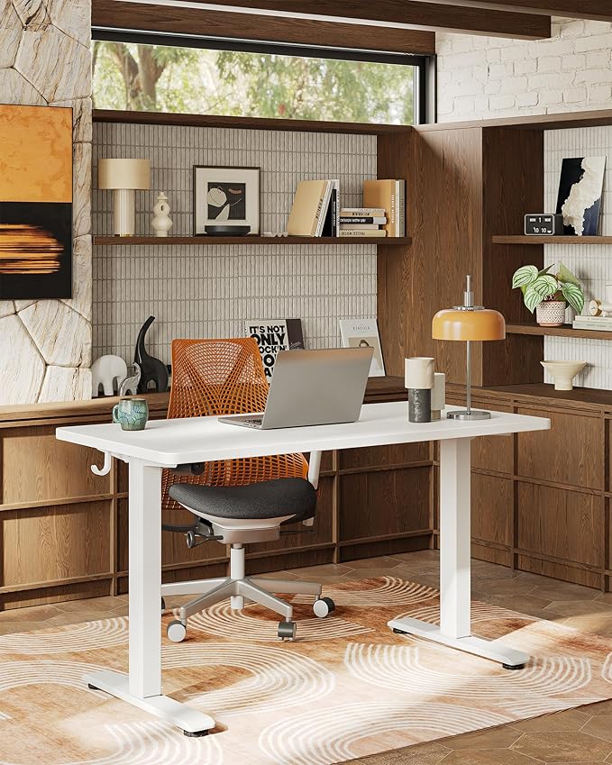 - 「Ergonomic Home Office Desk」 - The adjustable standing desk allows you to switch between sitting and standing while working, promoting healthier posture and more productive work habits, reducing strain on the body.