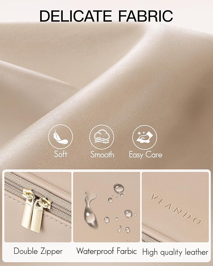 - Durable Travel Makeup Organizer: Vlando makeup bag not only made of Wear-resistant PU Leather, also special added sponge to prevent collision, feels soft as a pillow and protect your cosmetics non-collision