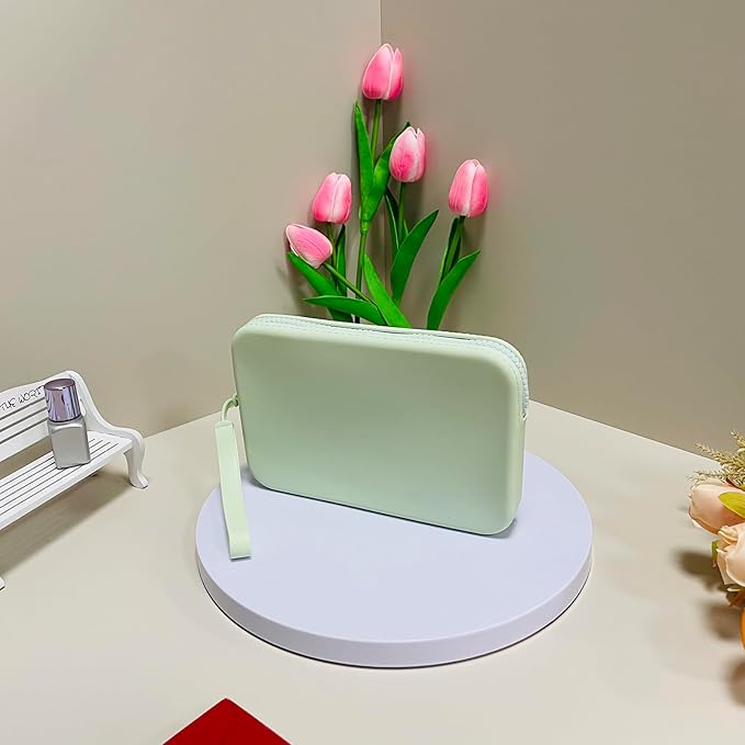 WHHJM Large Silicone Multifunctional Essential Bag Portable Travel Makeup Bag for Women Men Cards Cash Bag Zipper Pouch (Light Green)
