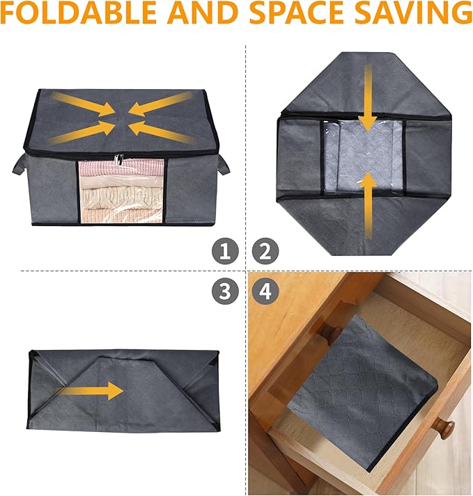 - Multiple Functional: Store clothes organizers and storage, blanket organizer, shoes, quilts, sheets, yarn, bedding, pillows, Sweater Storage, books, t-shirts, etc. Can be placed in closet organizers and storage, under bed storage, dorm rooms, bedrooms, etc. Small storage bags with zipper make the space neat and tidy