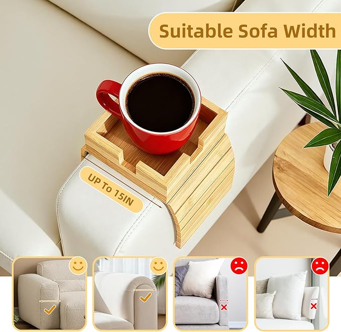 - Secure, Anti-Slip & Anti-Falling Design:Engineered for stability and safety, our sofa armrest tray features a high-grip anti-slip felt base. This design locks the couch armrest table firmly in place, preventing annoying slips and potential spills. It effectively protects your sofa's surface while providing a stable and secure arm rest table for couch, giving you complete peace of mind.