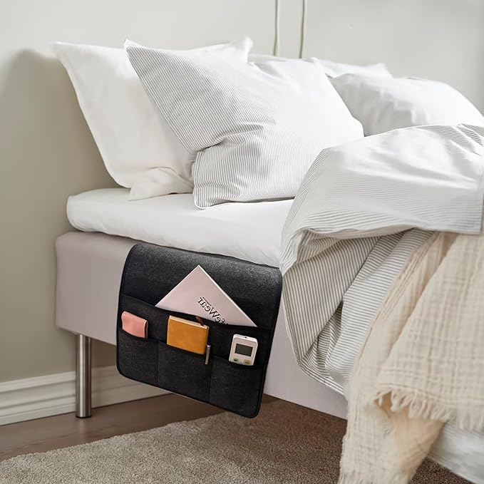 - Space-Saving Design: Slim profile organizer that fits securely on your bedside or sofa armrest without taking up valuable floor space.The Holder really suitable for living room, bedroom, office, can be used in many place