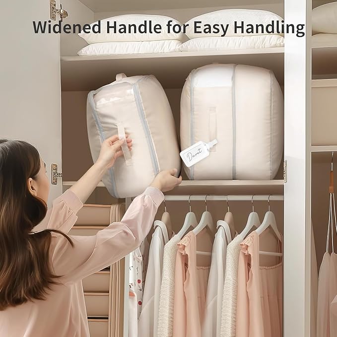- Just the Right Size: Our bags are designed to hold a lot without taking up too much space. Each one can easily fit a large winter comforter or 6-8 down jackets. They’re perfect for decluttering your closet and keeping your seasonal items organized and ready to go