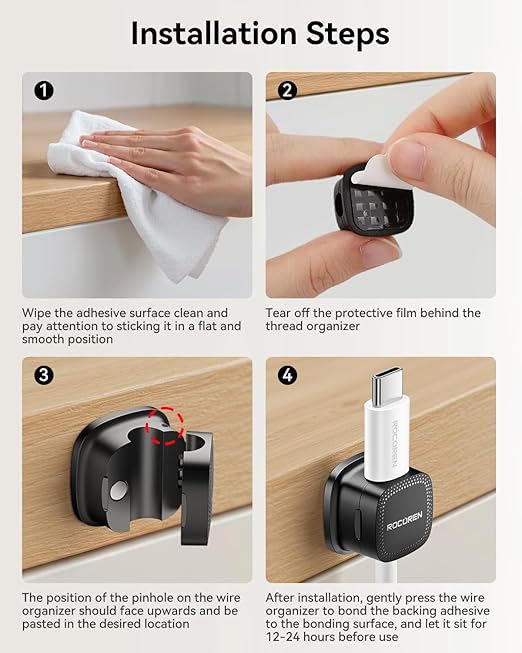 - High-Strength ABS Material: Rocoren magnetic cable management Passed 2000 gravity cycle tests (Lab-Tested Durability), the durability of the rubber material is 200% improved, and it is impact-resistant and corrosion-resistant. Installation tips: Please use alcohol cotton to clean the surface before use, press for 30 seconds to activate the glue, and let it stand for 12-24 hours to achieve the best viscosity (Maximum Adhesion)