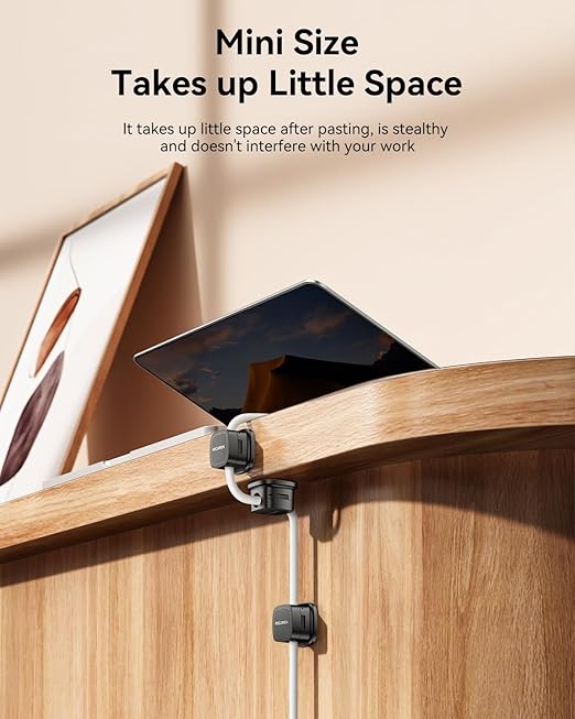 - Super Adhesive: The cable management Equipped with Upgrade Acrylic Adhesive, the adhesiveness is increased by 300% compared to ordinary 3M. It firmly adheres to smooth surfaces such as wooden tables/glass/ceramic tiles, and does not leave any residual glue after removal. Each box comes with a Reusable Adhesive Pad, which extends the service life and is more environmentally friendly and economical
