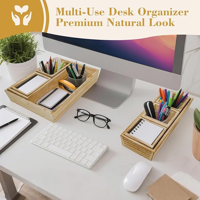 - 【Package Includes】Set of 8 wooden desk drawer organizers in a rustic natural wood tone. Designed to bring a touch of farmhouse charm while keeping your home office neat and tidy. Both functional and decorative, they add warmth and style to your workspace.
