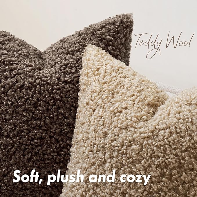 Woaboy Faux Fur Throw Pillow Covers 20x20 Inch Set of 2 Boucle Neutral Decorative Sherpa Fuzzy Accent Soft Sheepskin Fleece Cushions Modern Home Decor for Couch Sofa Bedroom Living Room,Chocolate