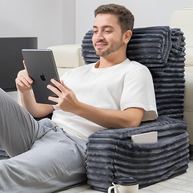 - [Premium Materials]: Our sit up pillow for bed comes with a plush faux fur cover that offers exceptional softness and comfort. It’s designed to provide a cozy, indulgent experience like no other back pillow you've tried. And the cover is machine washable, making it easy to keep clean and maintain its luxurious feel.