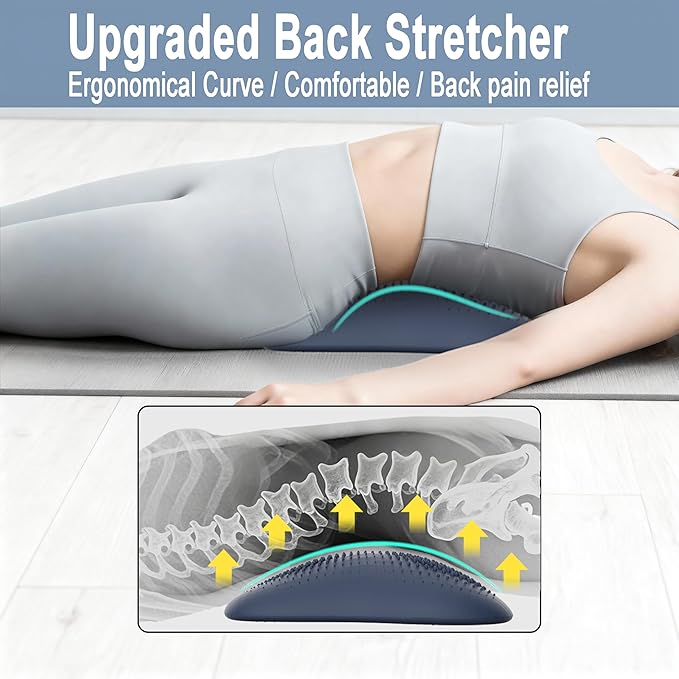- 【Not Only Back Pillow But Also Back Stretcher】It is a great upgraded back stretcher. The inflatable design offer the best comfortable. Curved surface follows the natural curve of your spine when lay on it. Back Stretcher can relieve tight back muscles and reduce compression along the lumbar area. Safe and easy to use. Our back stretcher is a must-have for lower back pain relief at home and in the office