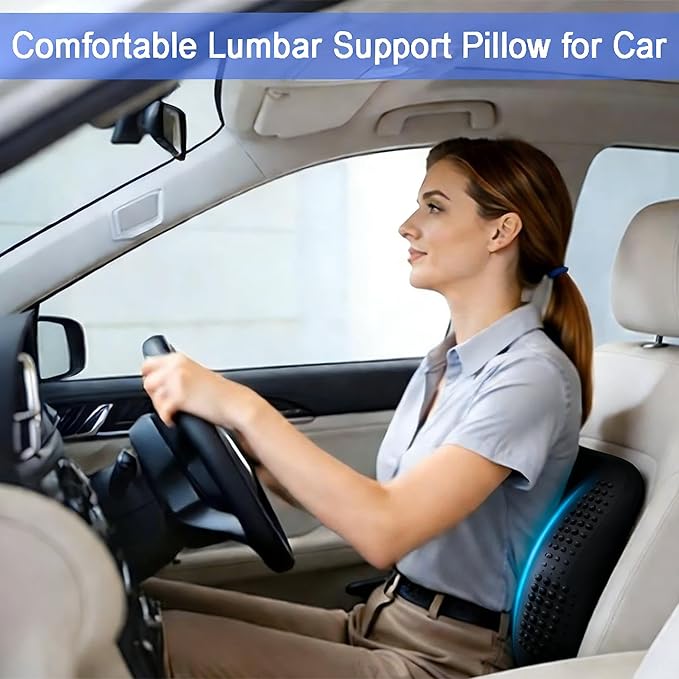 - 【Comfortable Lumbar Support Pillow for Car or Your Office Chair】 If you spend a lot of time sitting on office chair and driving in car, this back pillow will help you. Made with high-density thick rubber, this back support pillow balances firm posture support with long-lasting comfort - not overly hard, not too soft. It is designed ergonomically to relieve lower back pain and back tightness, support you to achieve a posture and helps maintain the curve of the spine