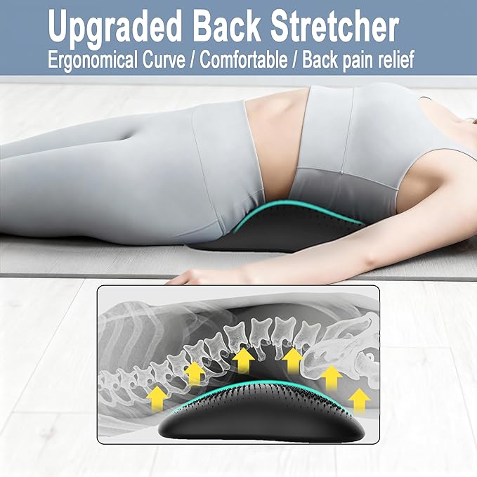 - 【Not Only Back Pillow But Also Back Stretcher】It is a great upgraded back stretcher. The inflatable design offer the best comfortable. Curved surface follows the natural curve of your spine when lay on it. Back Stretcher can relieve tight back muscles and reduce compression along the lumbar area. Safe and easy to use. Our back stretcher is a must-have for lower back pain relief at home and in the office