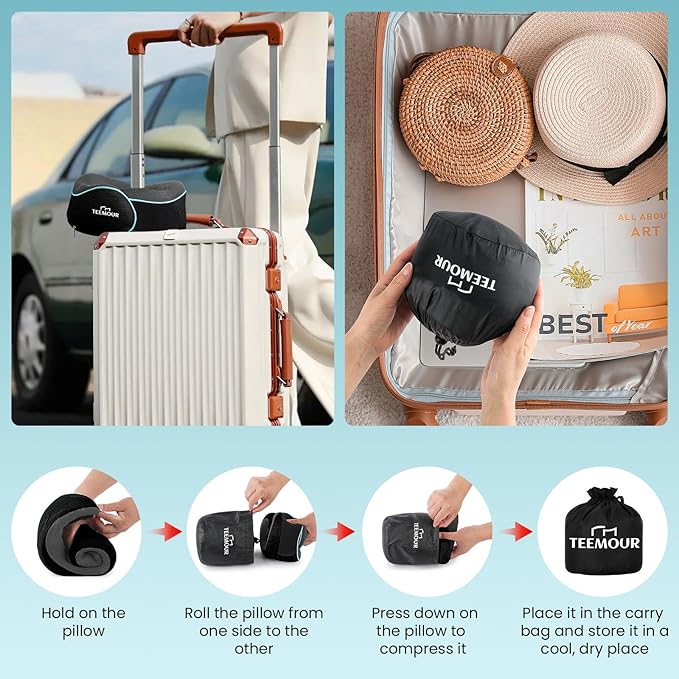 - ๐๐๐๐๐๐๐๐ & ๐๐๐๐๐๐๐๐๐๐---Designed for easy travel, the Teemour travel neck pillow can be compressed and stored in the included compact carry bag , easily attaching to luggage, backpacks, or tote bags. Lightweight design travel pillows for airplanes can be hassle-free additions to your travel essentialsโperfect for international flights, Driving, camping, or daily commutes.