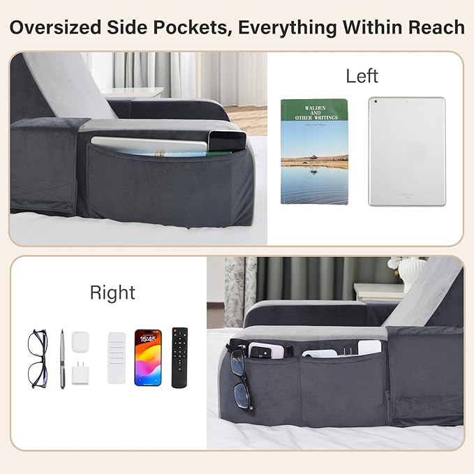 - Smart Storage: Two oversized side pockets hold books, tablets, phones, remotes, and other essentials within easy reach