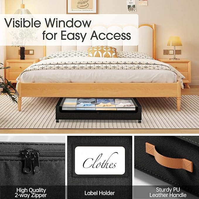 - 360°Rotating Wheels for Easy Movement: No more heavy lifting! Equipped with 4 smooth, silent wheels, 2 with locks, our underbed storage glides easily on floors and carpets. Whether full or empty, kids and adults can effortlessly slide it under the bed or pull it out for quick access
