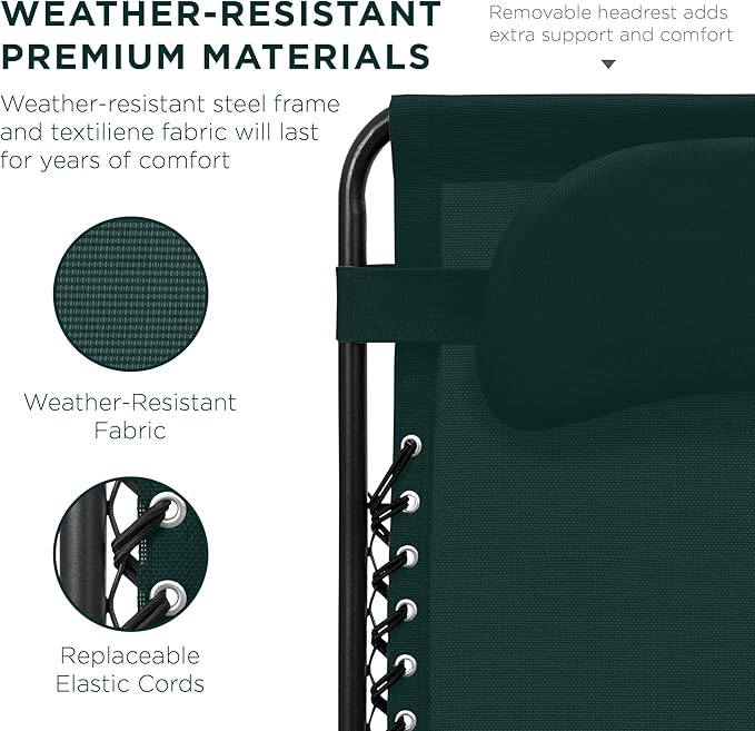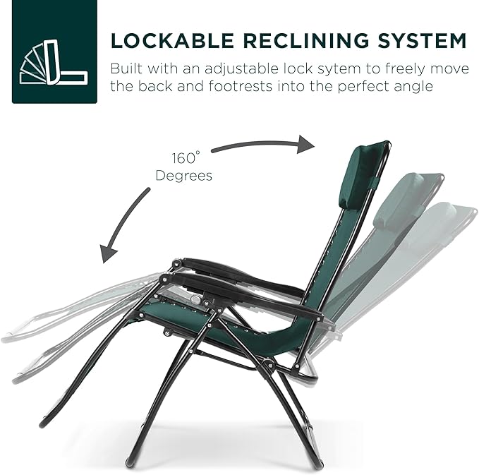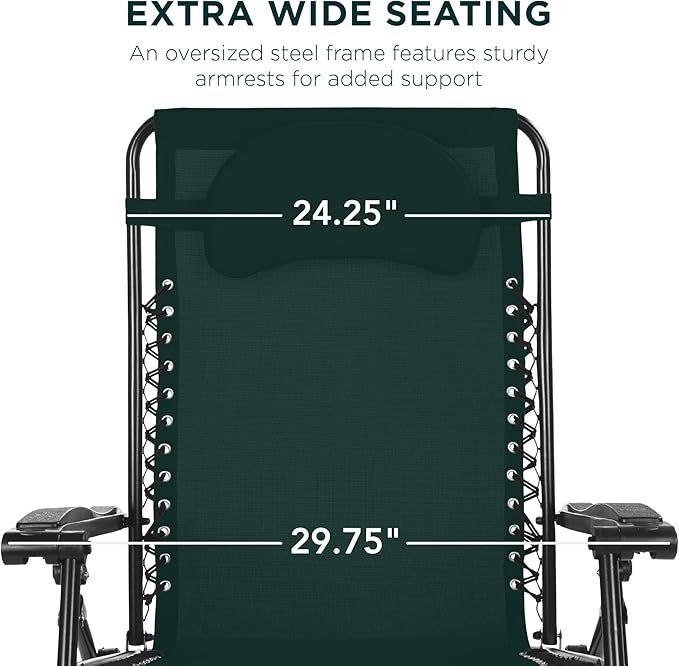 Best Choice Products Oversized Zero Gravity Chair, Folding Outdoor Patio Lounge Recliner w/Cup Holder Accessory Tray, Pillow - Forest Green