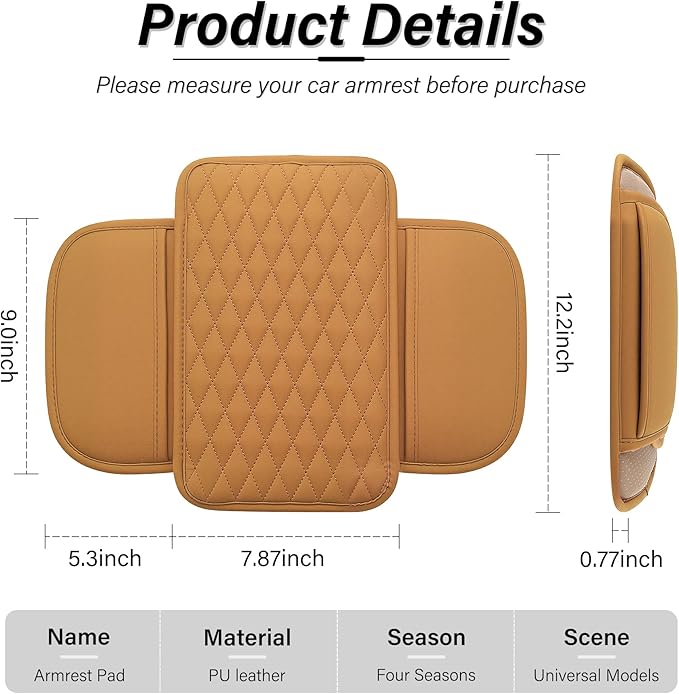 - 【Protection】With waterproof leather and non-slip padding, this car armrest mat protects your console from spills, sweat, pet paws, and UV rays, providing total protection for your car's armrest compartment. Easy to clean, simply wipe with a damp cloth!