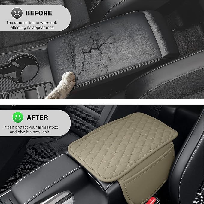 - 【Protection】With waterproof leather and non-slip padding, this car armrest mat protects your console from spills, sweat, pet paws, and UV rays, providing total protection for your car's armrest compartment. Easy to clean, simply wipe with a damp cloth!