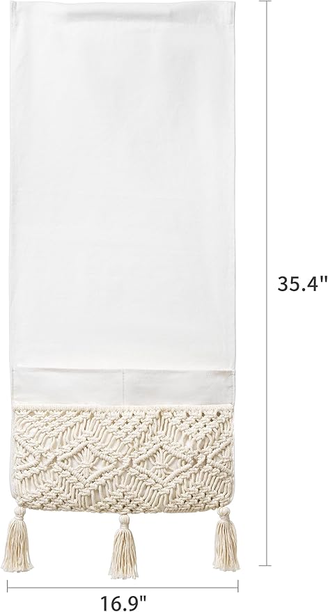 - The macrame remote control holder is made of high quality canvas and cotton cord material. The size is 35"Length x16.9" Width. They are the adorable size and look amazing over in your house.
