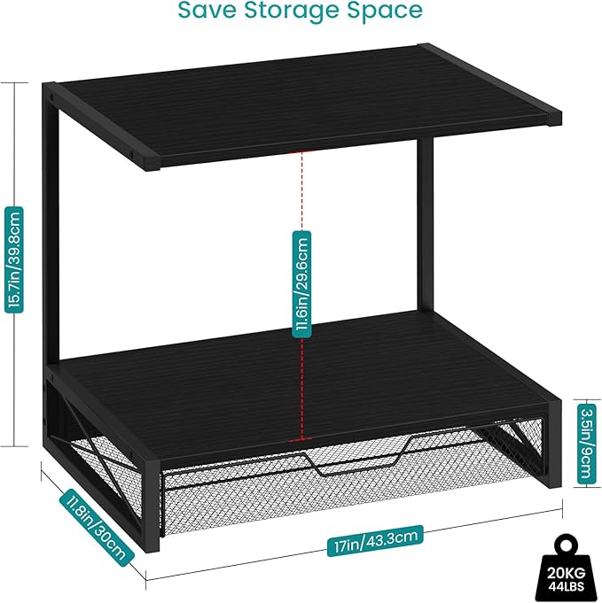 - 【2-Tier Design for Small Printers】Dimensions: 17.3"D x 11.8"W x 15.7"H. This 2-tier open printer shelf can accommodate up to two printers, or a 3D printer, fax machine, or scanner, with the middle space being 11.8" tall. The design maximizes vertical space, offering ample room for your equipment while keeping your workspace organized.