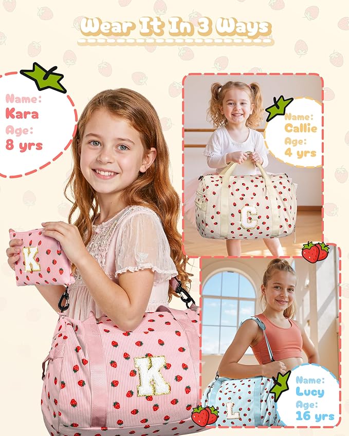 - 【Robust Gym Bag】This cute strawberry dance bag is made of high density polyester & lining which is robust, lightweight and tear-resistant, corduroy texture, with smooth double zippers.