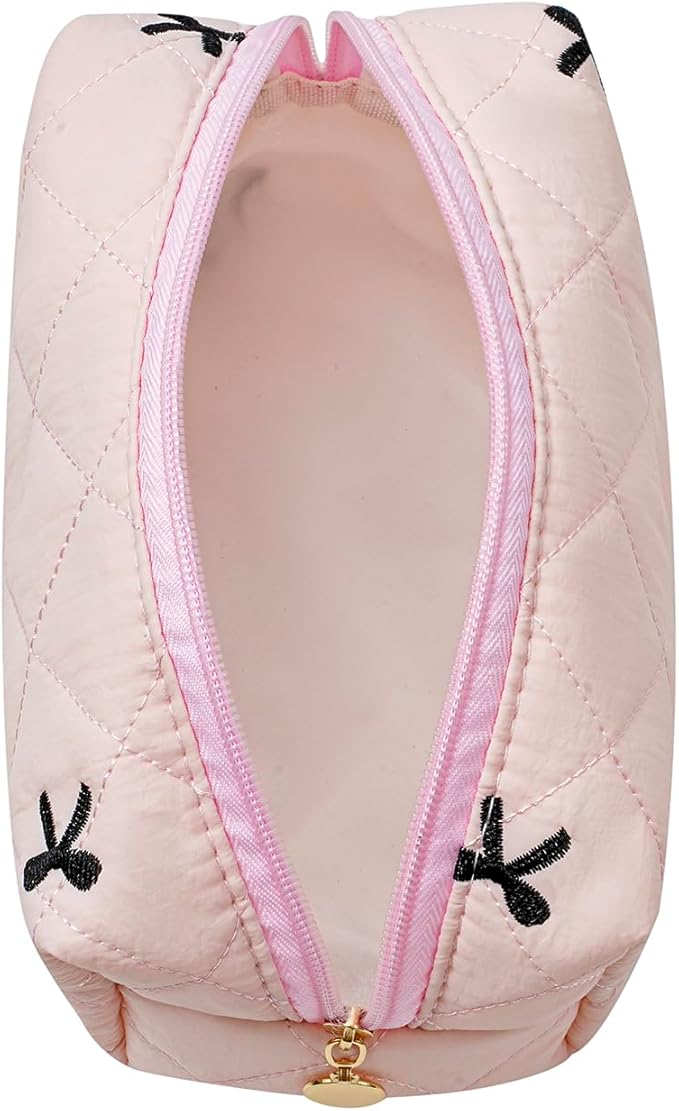 - 💝 Multi Purpose - The cotton quilted makeup bag can be used as daily handbags, cosmetics and skincare organizing bags, storage bags, and travel toiletry bags. The initial makeup storage bag can be used during travel because it is lightweight and does not take up too much space in the suitcase.