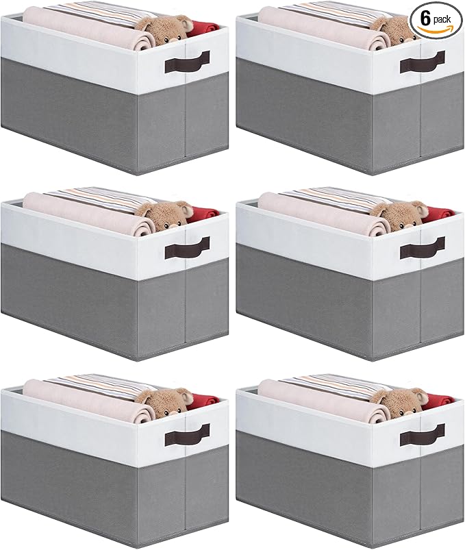 Cupic Cupid Storage Bins Closet, Fabric Closet Organizers and Storage, 6-Pack Baskets for Organizing, Large Storage Boxes with Handles for Clothes and Toys, Gray and White