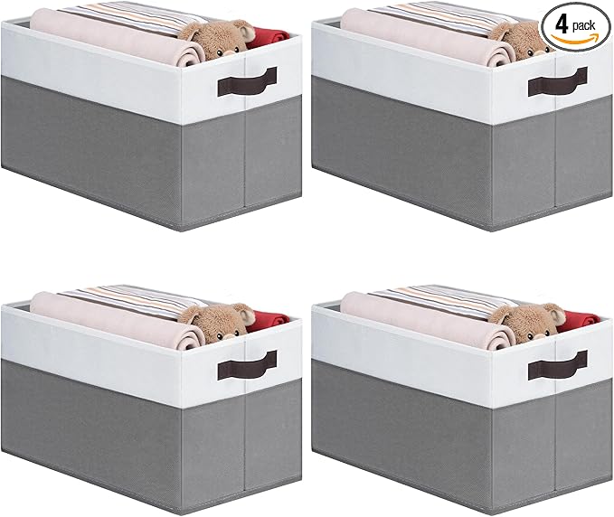 Cupic Cupid Storage Bins Closet, Fabric Closet Organizers and Storage, 4-Pack Baskets for Organizing, Large Storage Boxes with Handles for Clothes and Toys, Gray and White