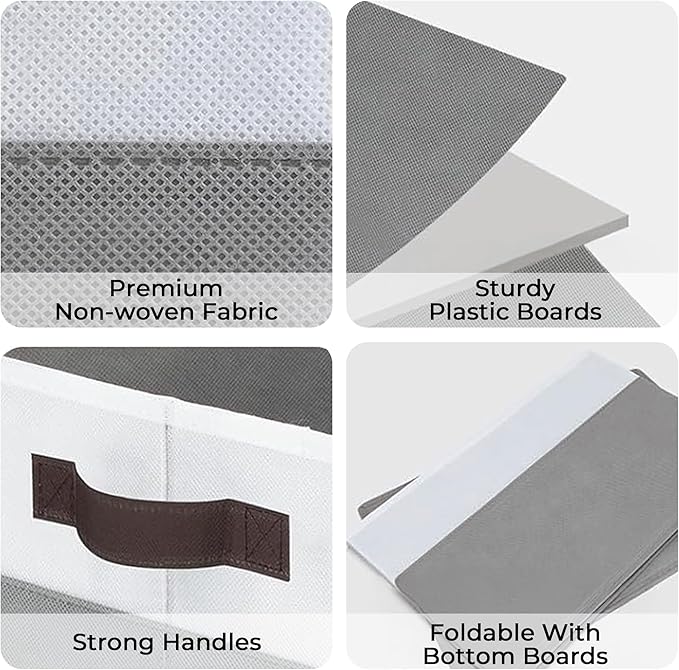 - Built to Last:Crafted with durable non-woven fabric and a reinforced hollow board base, these bins keep their shape perfectly. Ideal for closets, shelves, and nursery storage.