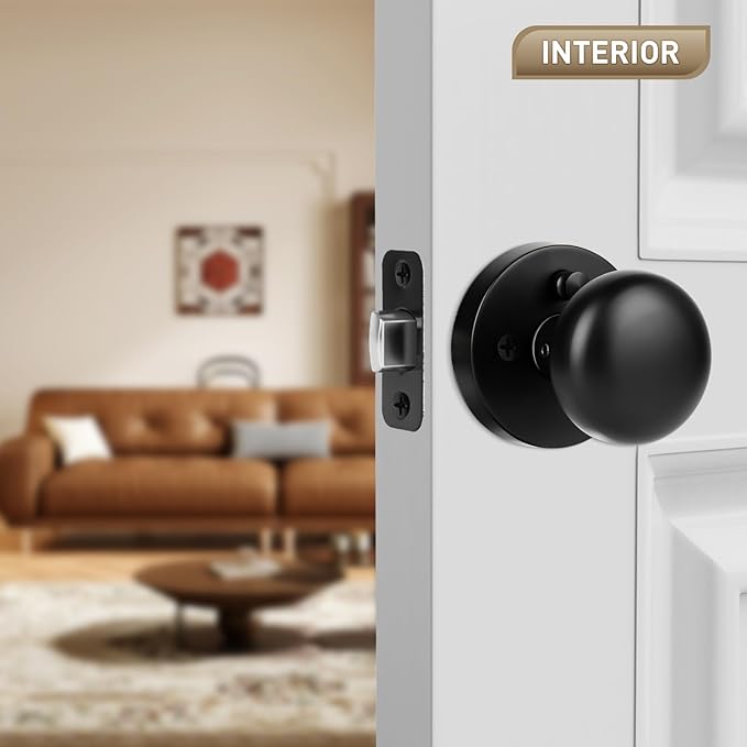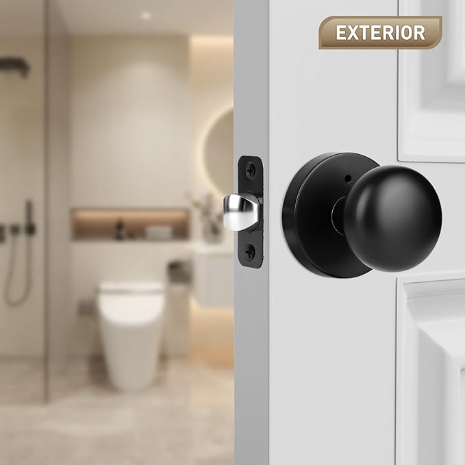 - 【Secure Push-Button Privacy Lock】The matte black door knobs are equipped with an intuitive push-button lock for instant privacy and a discreet emergency release hole on the exterior. Ideal for bathrooms, bedrooms, or offices. The perfect combination of privacy and security