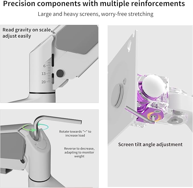 - Easy to Install and Reliable Support: You can easily complete the installation in a few minutes by following three steps: Step 1: Affix the bracket to your table; Step 2: Attach your monitor to the VESA plate; Step 3: Adjust tension according to your monitor weight. In addition, we provide all the hardware and simple assembly instructions for your reference;Reliable Support: Enjoy peace of mind with our 10-year support,ensuring long-lasting performance and assistance whenever needed